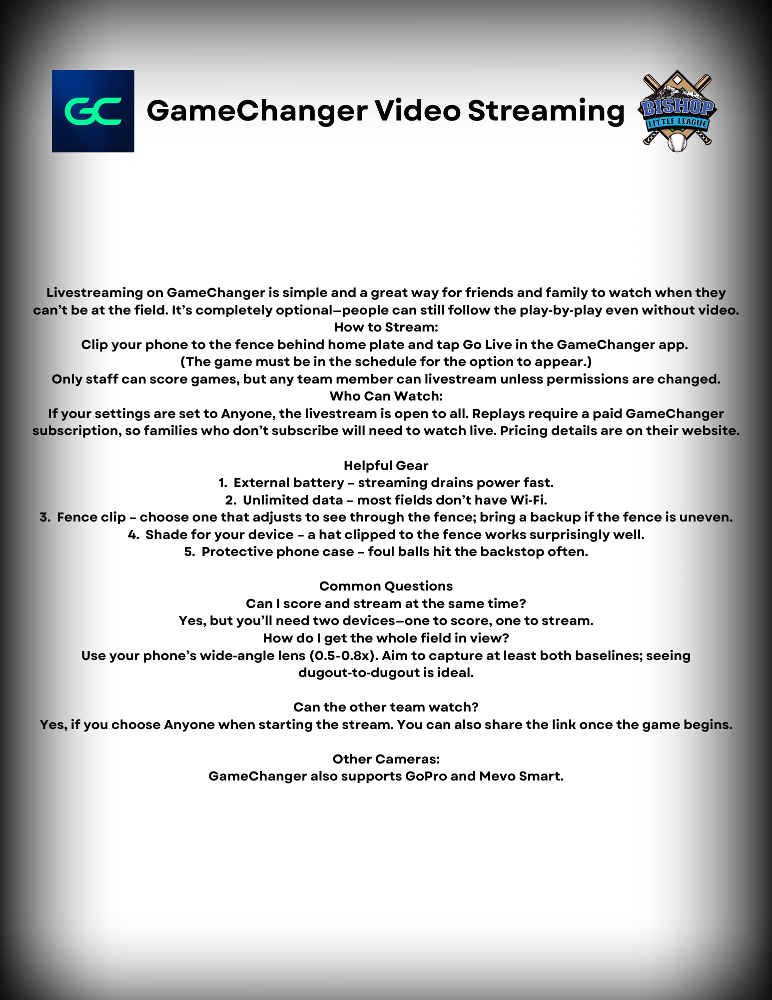 GameChanger How To'sScroll down to see several how to's within the app. If there is anything you'd like added please contact BLL Information Officer or Secretary.